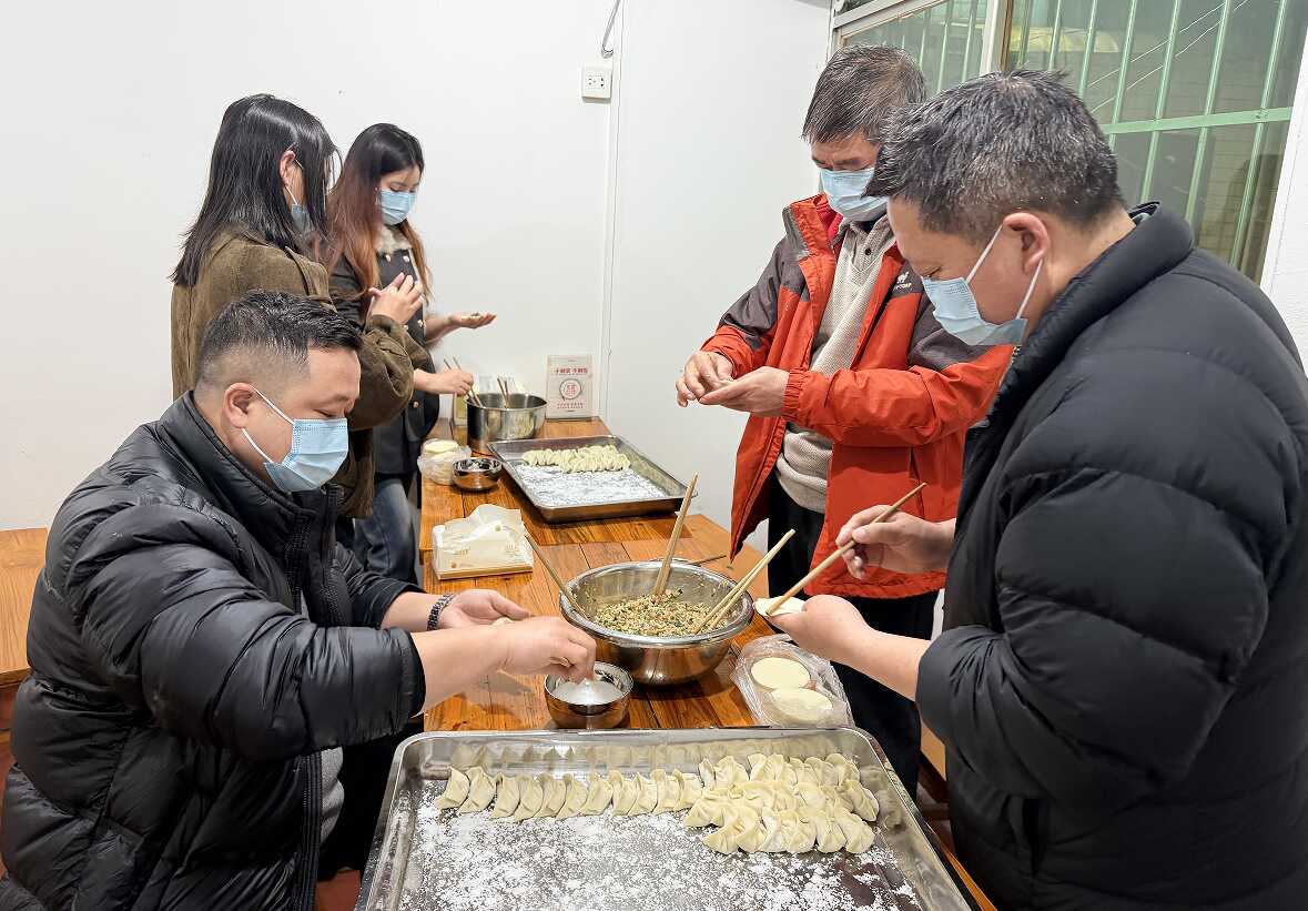 活动现场,大家洗净双手,纷纷化身“厨艺达人”,围聚在桌案前,撸起袖子,各显身手。捏出的饺子形态各异,有月牙形、元宝形、麦穗形,创意十足;还有的同志虽是初次尝试,但在“师傅”们的悉心指导下,也学得有模有样,现场充满了欢声笑语,其乐融融。在忙碌与协作中,浓浓的“家”文化温暖了寒冬。